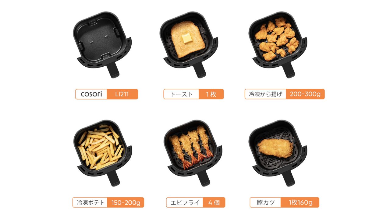 丸型のフライヤーとは違い、四角い形状のため、スペースを無駄なく使えるのが特徴です。