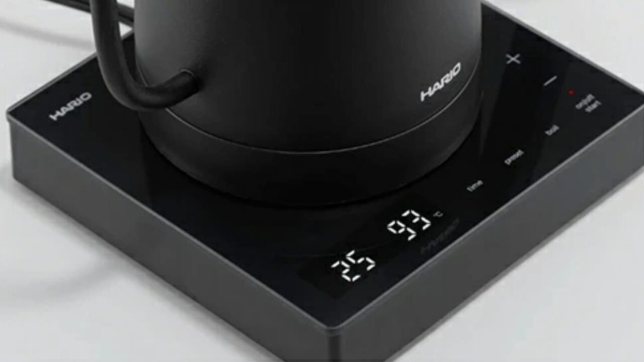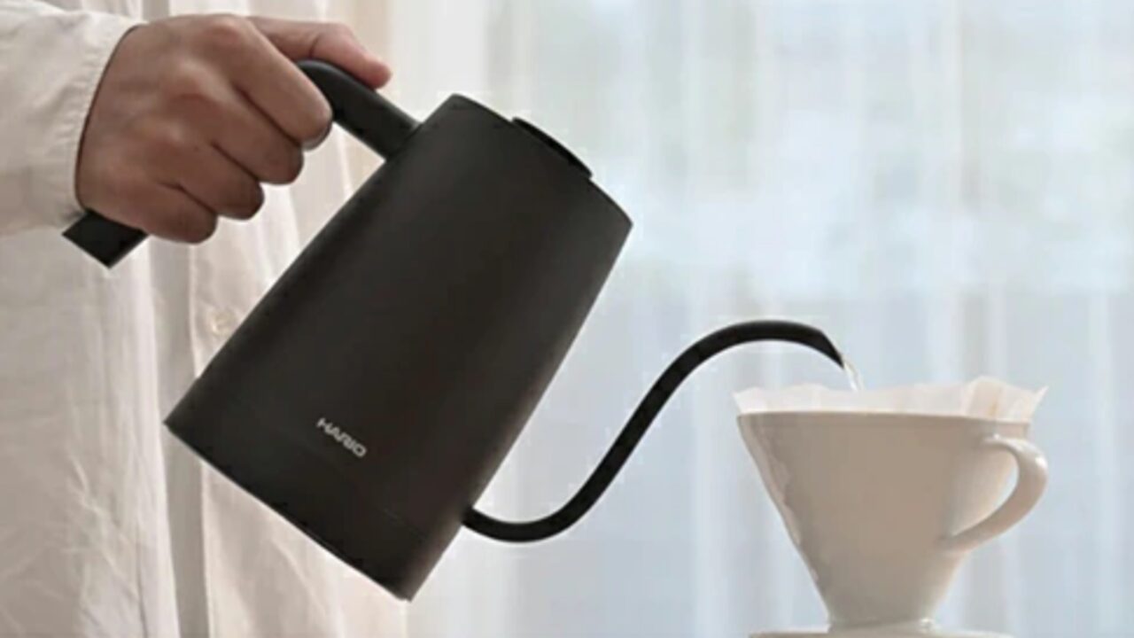 コーヒー器具のトップブランド「ハリオ」のエレクトリックケトル・ライラは、繊細なハンドドリップに最適な細口グースネックノズルが特徴です。