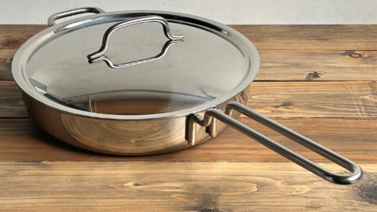 新潟県燕市で作られるジオ・プロダクトのソテーパン(フライパン)は、ステンレスとアルミニウムを重ねた「全面7層構造」が特徴です。
