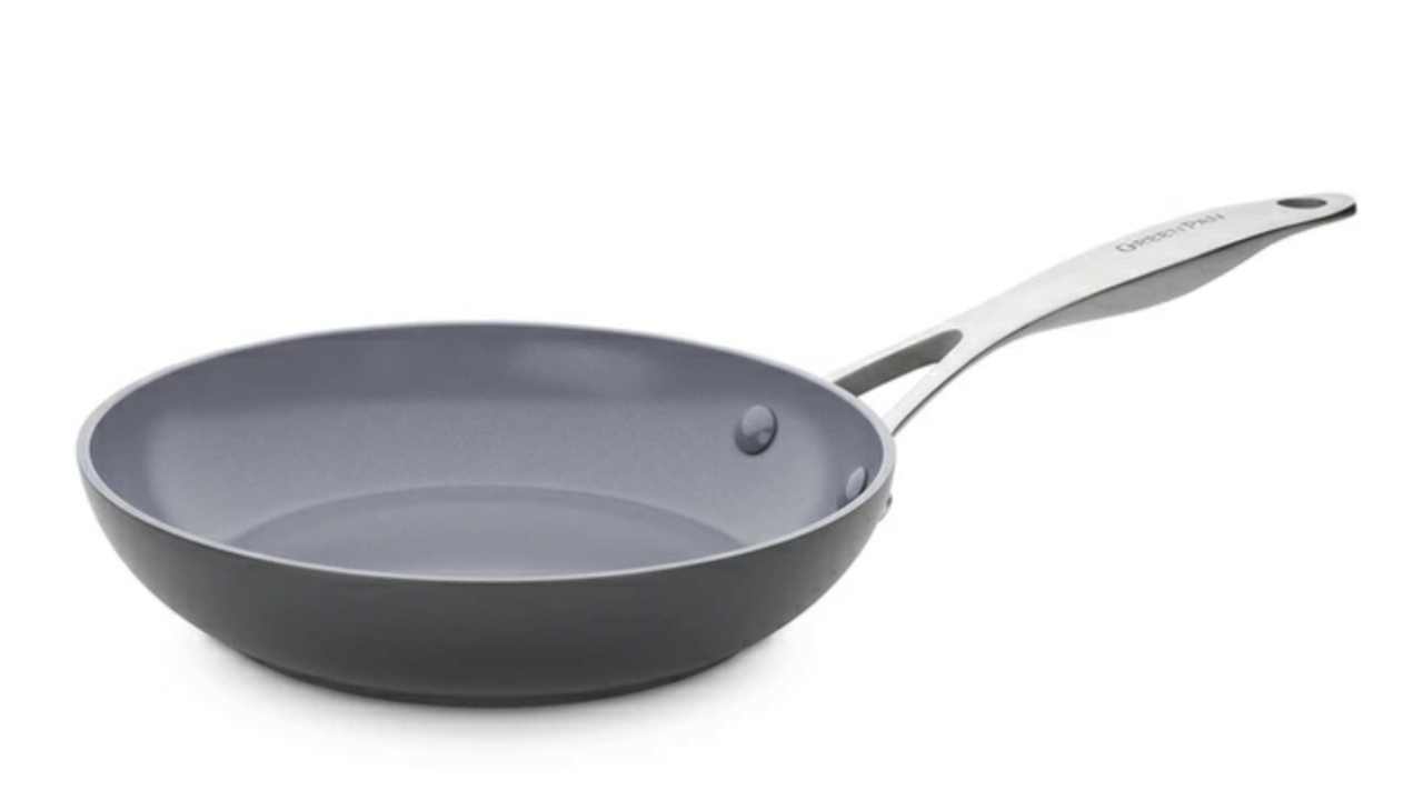 セラミックフライパンのグリーンパンがおすすめ。有害物質フリーの安心感と、こびりつきにくさを両立しています。