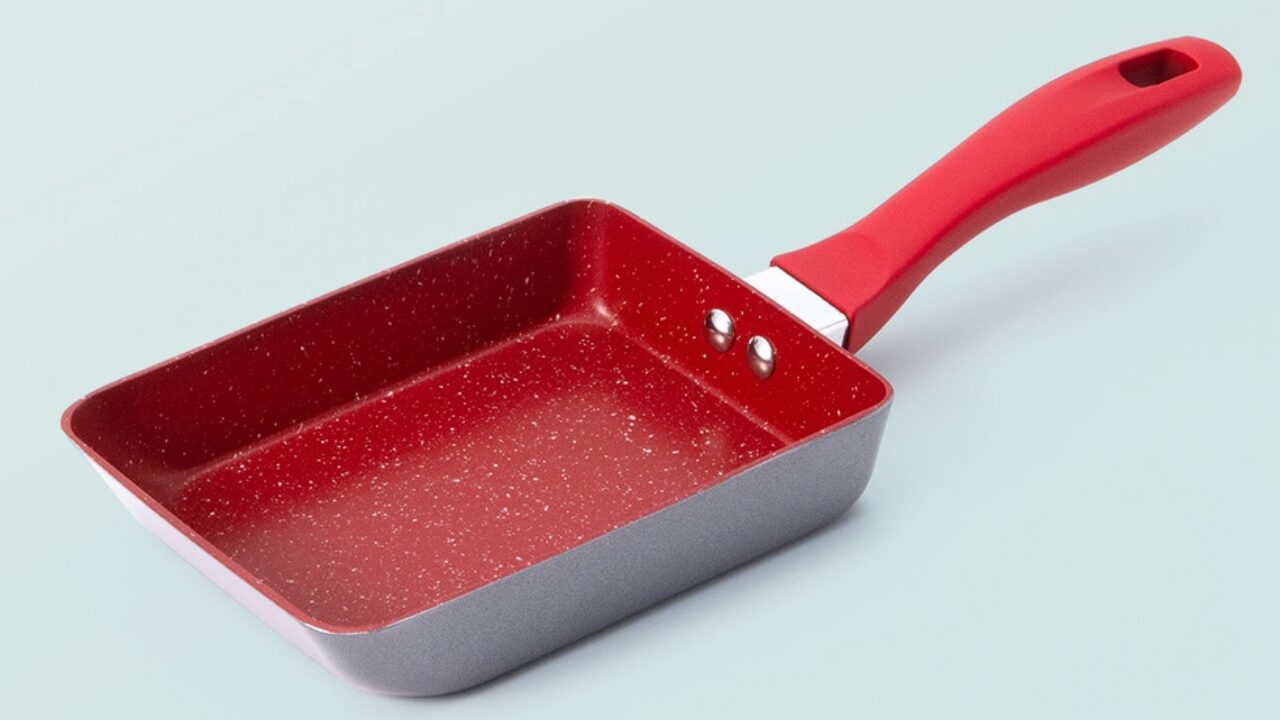 きれいな形の卵焼きを作るために設計された、長方形の玉子焼き専用フライパンです。