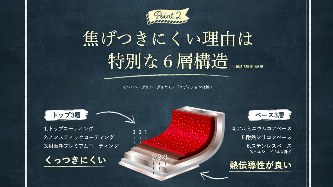- 焦げ付きにくさの秘密は考え抜かれた特別な6層構造にある